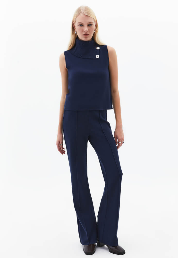• Bayan Lacivert Yüksek Bel Flare Pantolon