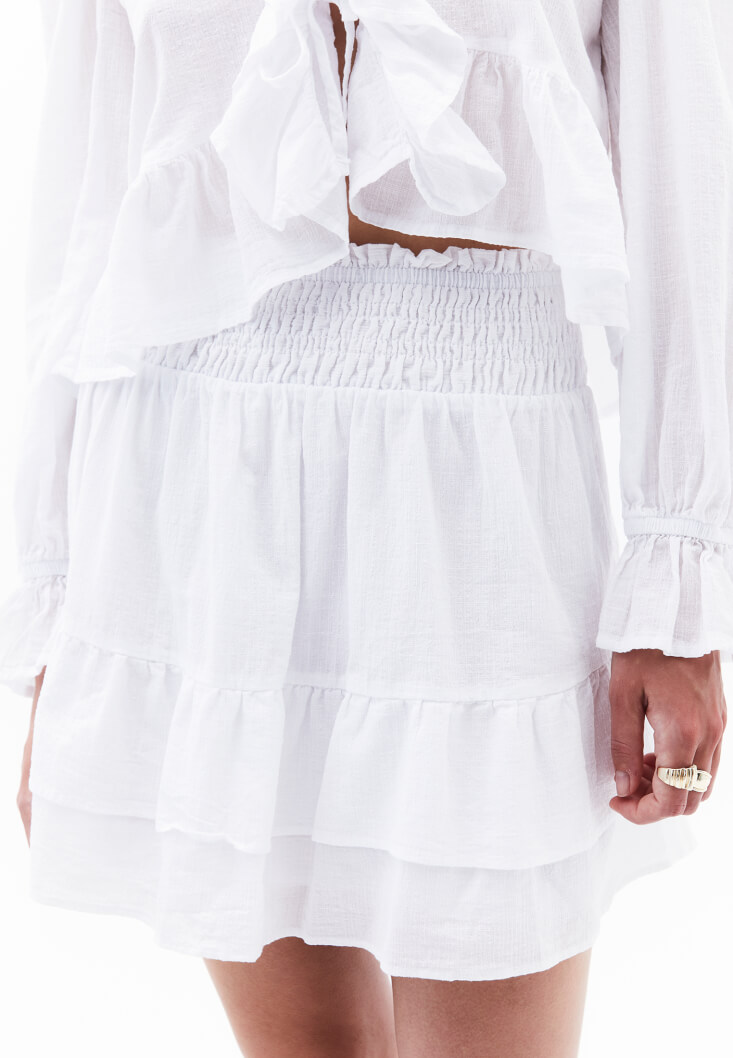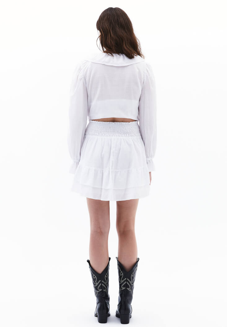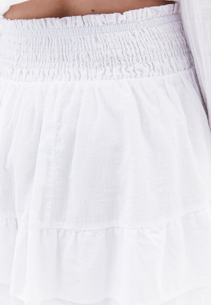 Beyaz Yüksek Bel Gipeli Mini Etek