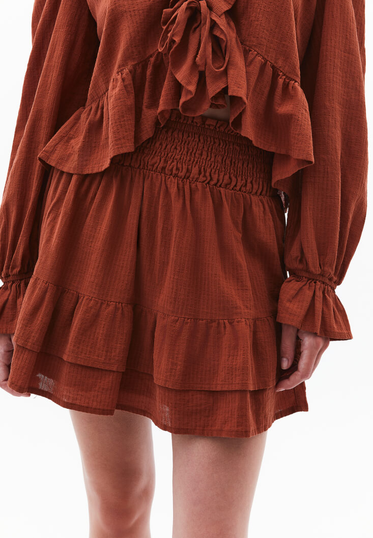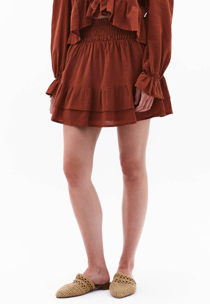 Kiremit Yüksek Bel Gipeli Mini Etek