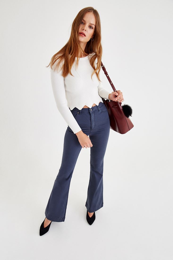 Lacivert Yüksek Bel İspanyol Paça Pantolon