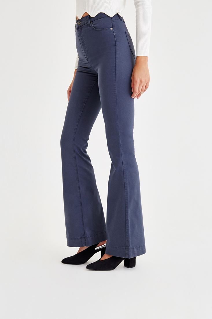 • Bayan Lacivert Yüksek Bel İspanyol Paça Pantolon