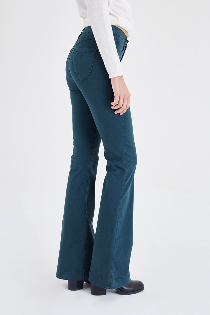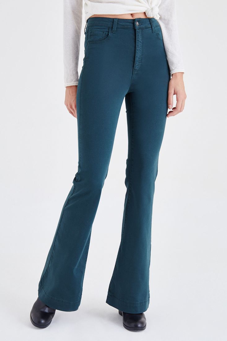 • Bayan Yeşil Yüksek Bel İspanyol Paça Pantolon