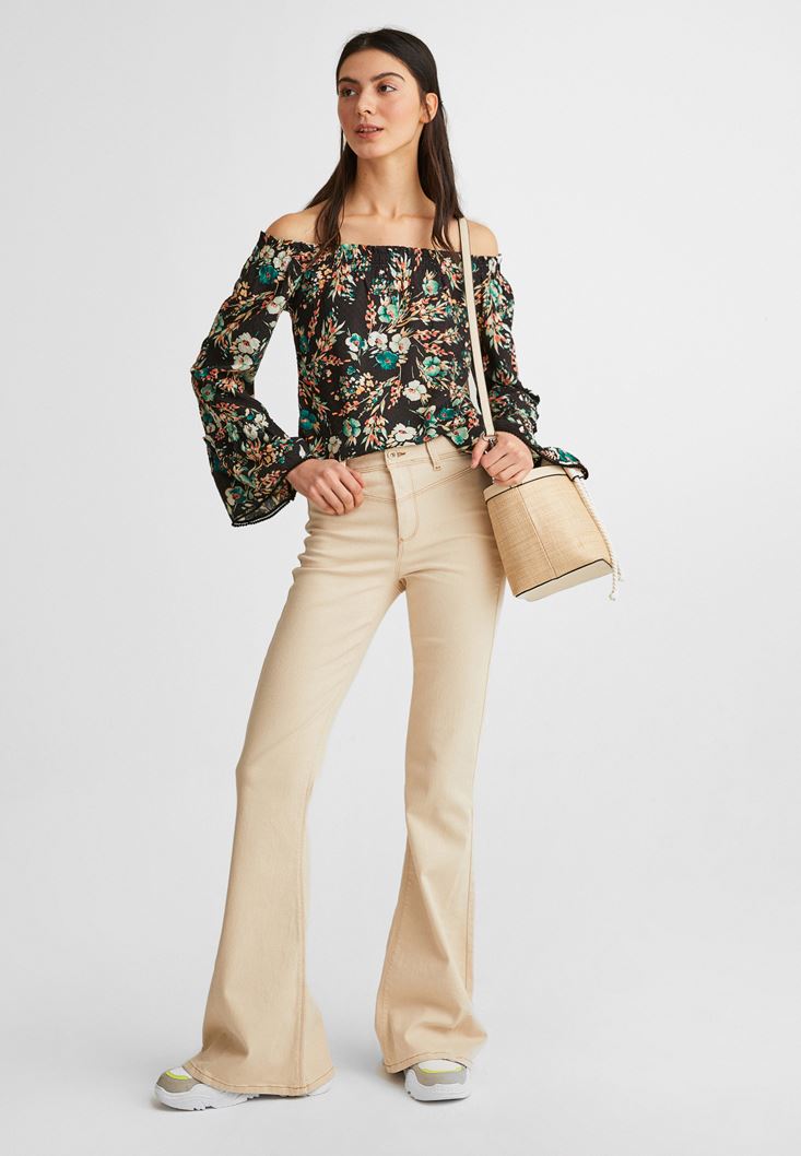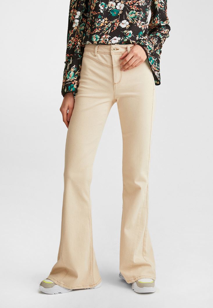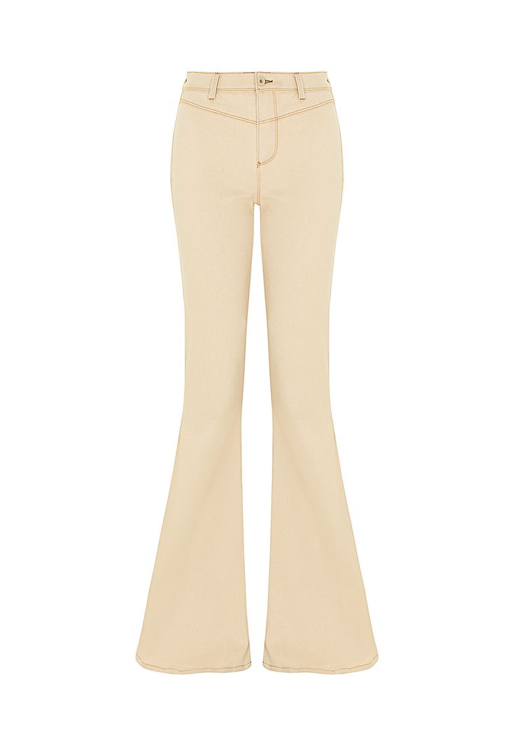 • Bayan Krem Yüksek Bel İspanyol Paça Pantolon