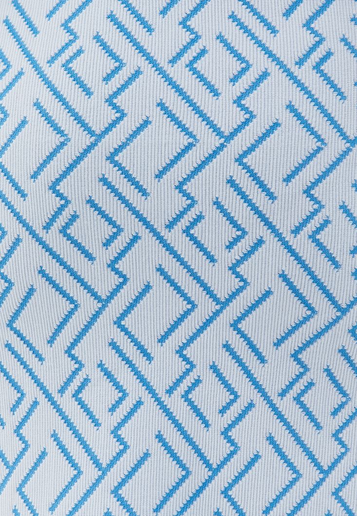 Pamuk ve viskon karışımlı doku, zikzak desenli, yüksek bel, ön kısmı iki yırtmaçlı, bedene yakın fit, beli lastikli.