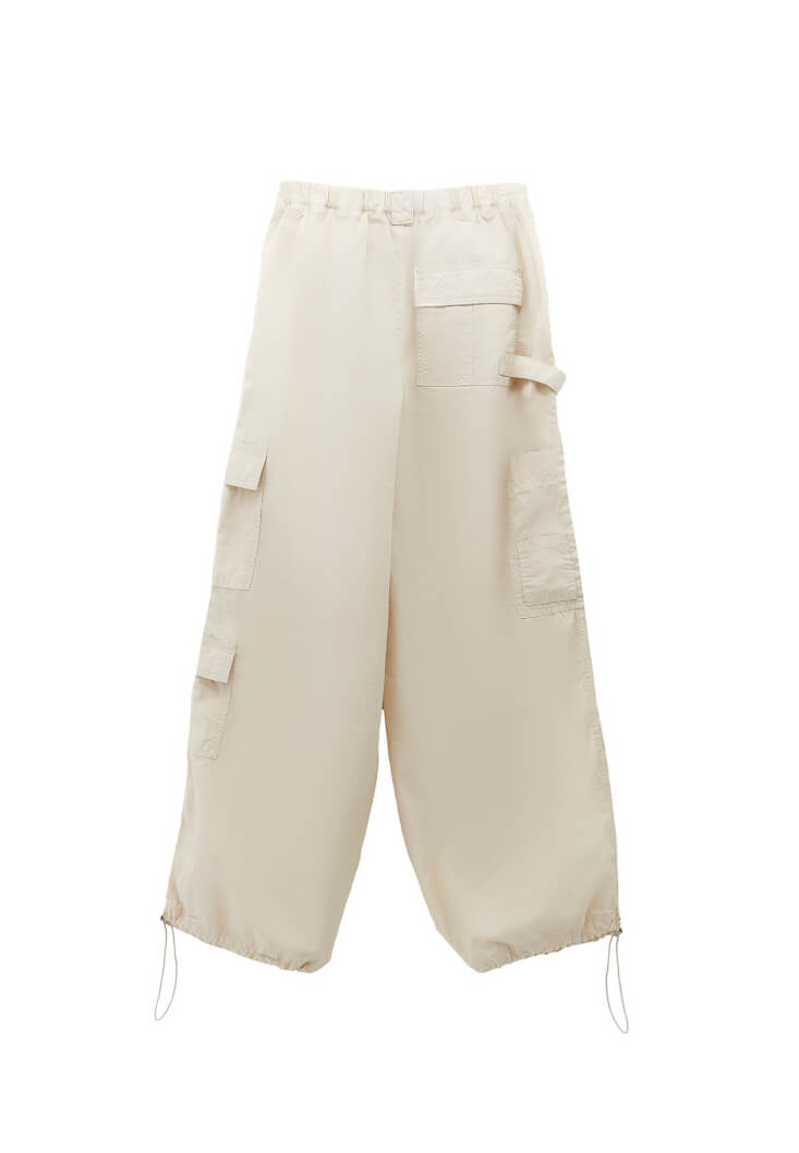 %100 pamuklu doğal doku, yüksek bel, bedenden uzak jogger fit, beli ve paçası ayarlanabilir lastikli, kargo cepli, yan kısmı kemer detaylı.