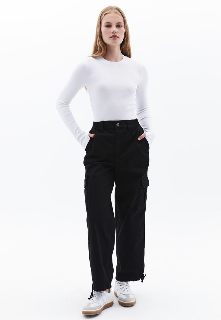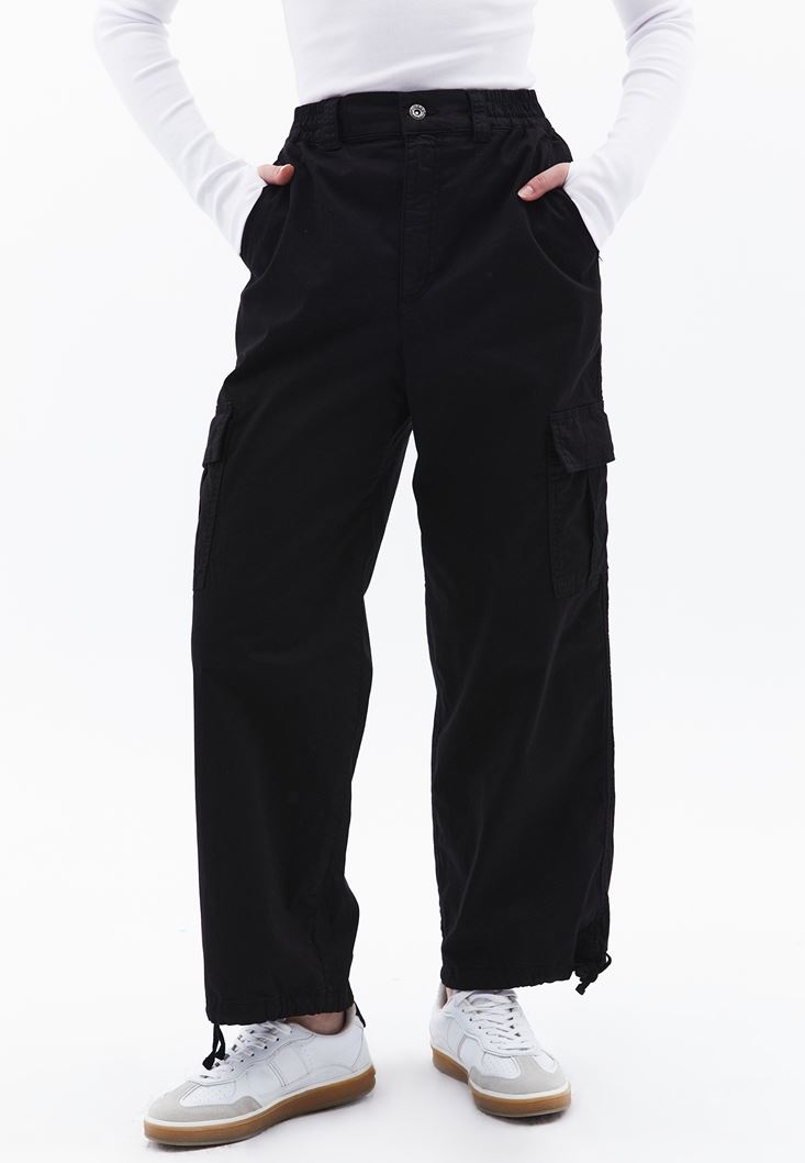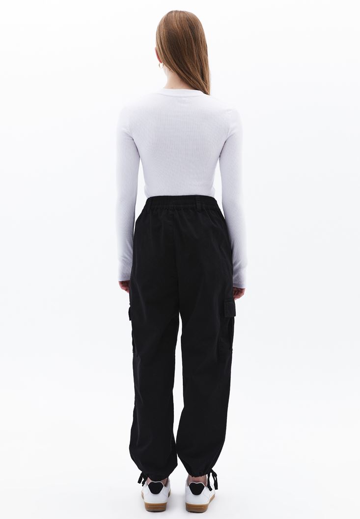 • Bayan Siyah Yüksek Bel Jogger Kargo Pantolon