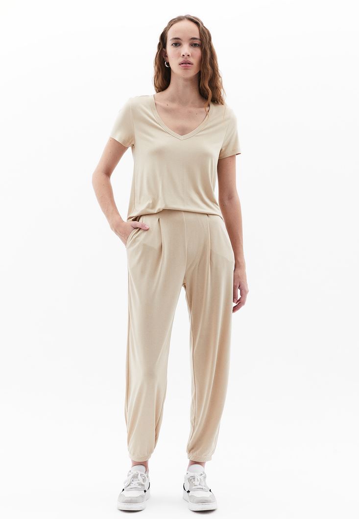 • Bayan Bej Yüksek Bel Jogger Pantolon ( MODAL )