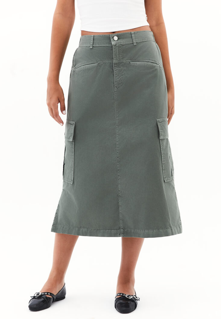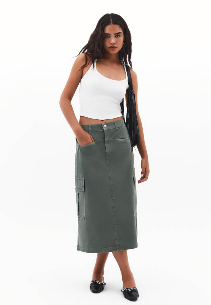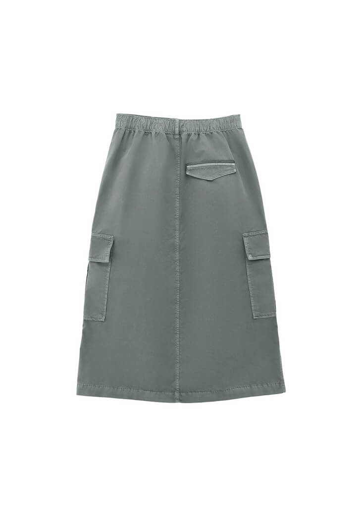 • Bayan Yeşil Yüksek Bel Kargo Cepli Etek