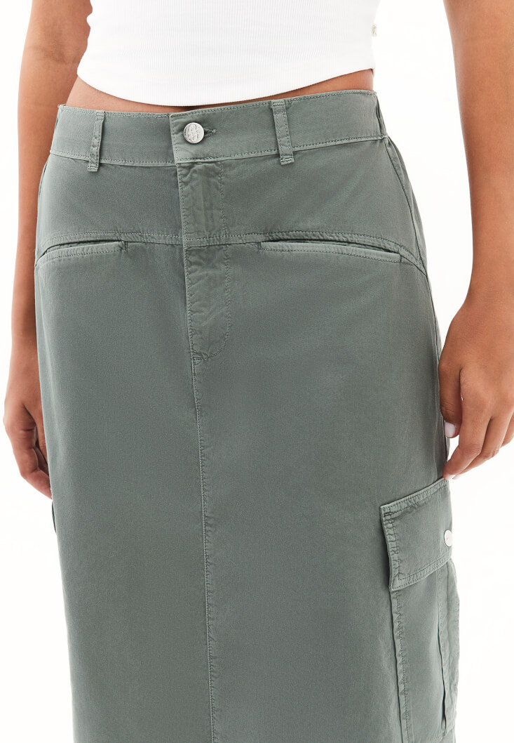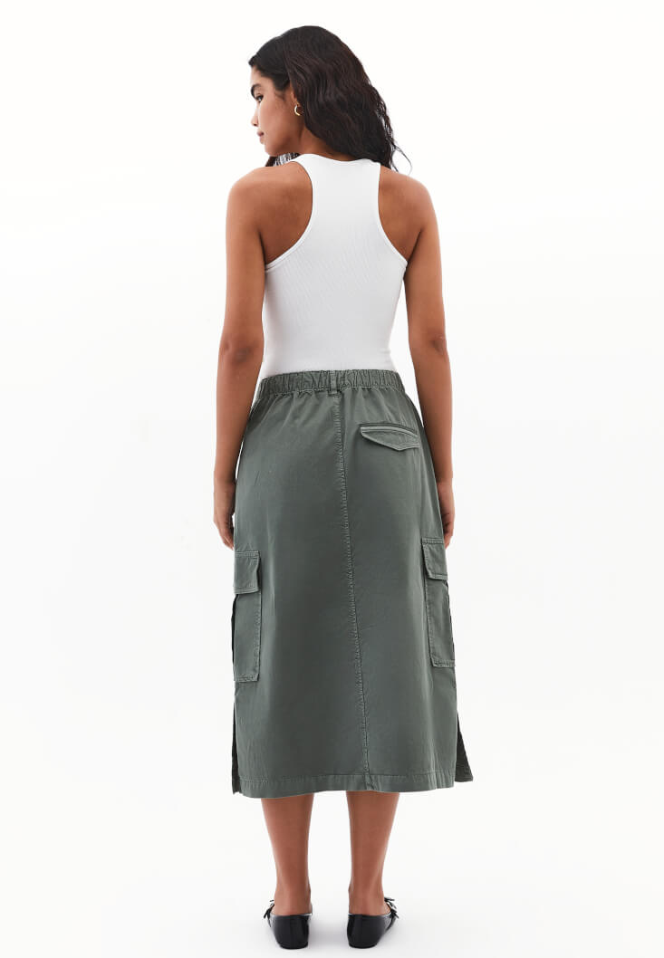 Yeşil Yüksek Bel Kargo Cepli Etek