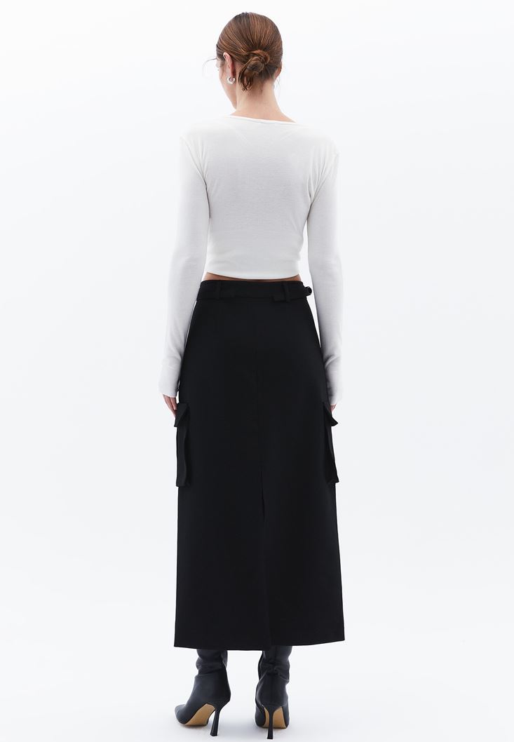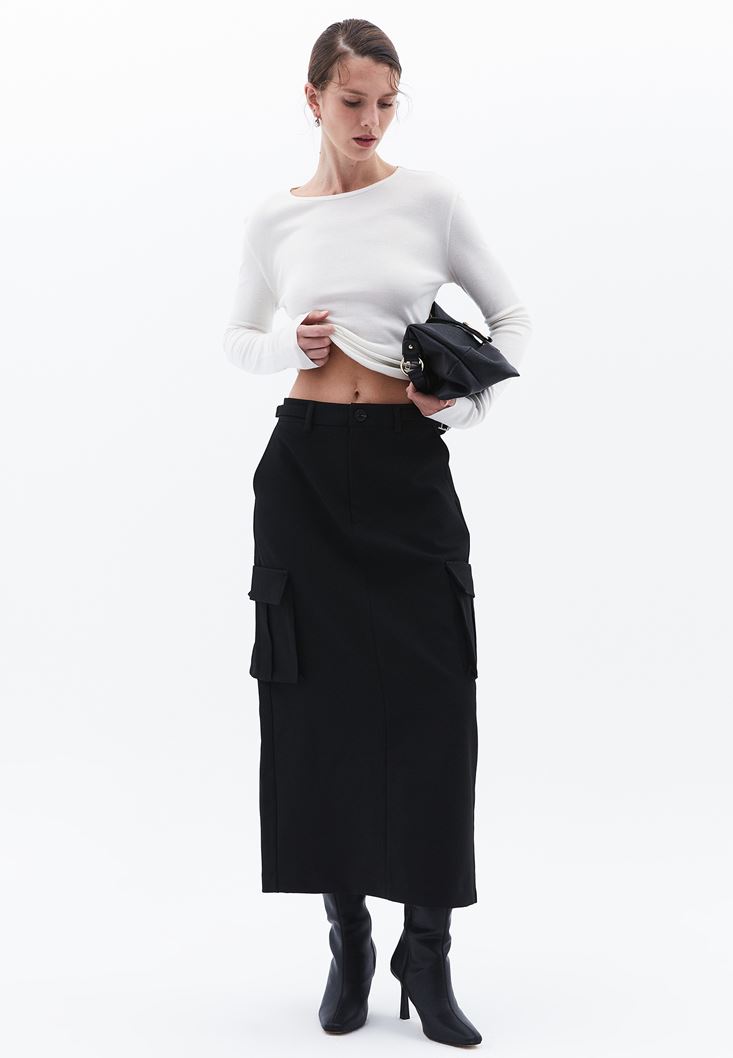 Kargo cepli tasarımla birleşen close fit uzun etek modeli! Etek şıklığını farklı bir şekilde kullanmak isteyenler için ideal seçenek olan bu parça; hem günlük hem de iş kombinlerinizde size eşlik edebilir. Uzun etek modelinin kargo cep detayı sayesinde günlük stilinize sportif dokunuşlar yapabilir, aynı zamanda bu kombini ister sneakerlarla ister yüksek tabanlı botlarla tamamlayabilirsiniz. Aradığınız farklı ve çarpıcı uzun etek modelini buldunuz, hadi onunla tanışın!😘