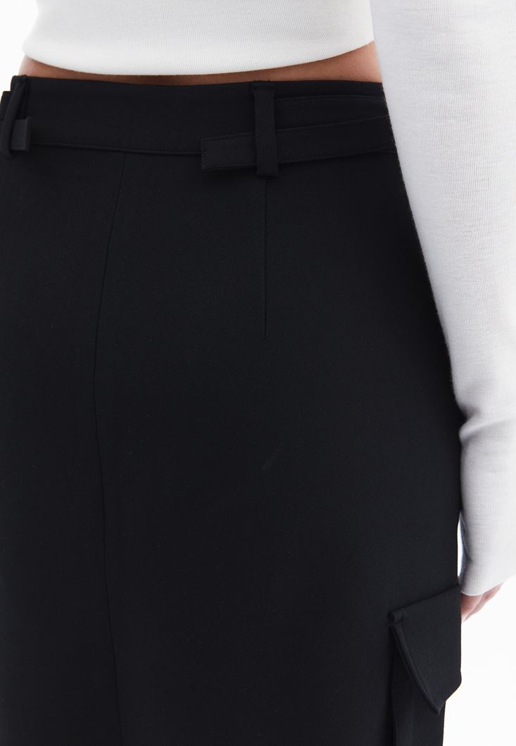 • Bayan Siyah Yüksek Bel Kargo Cepli Etek