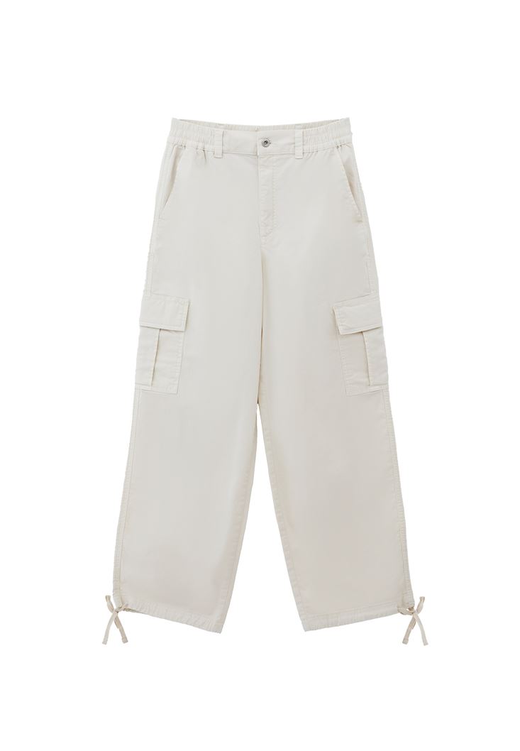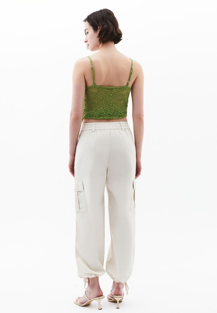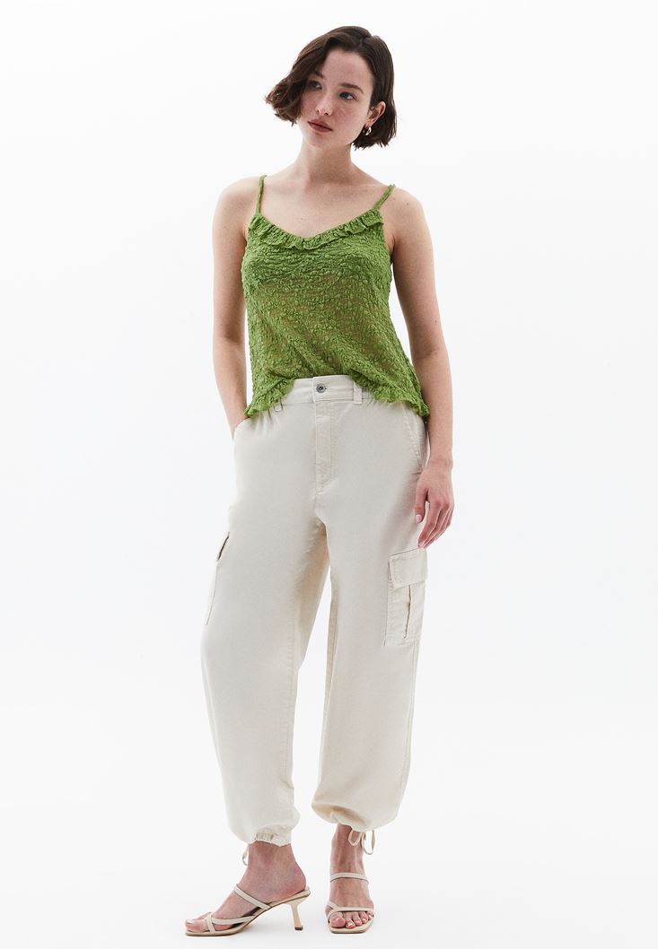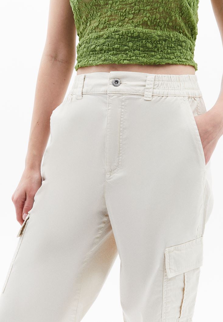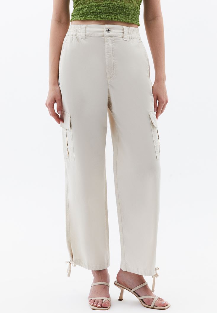 Krem Yüksek Bel Kargo Cepli Pantolon
