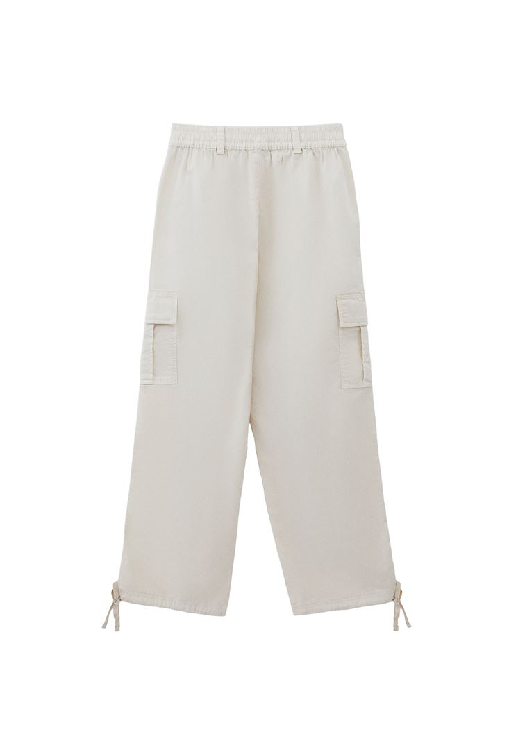 • Bayan Krem Yüksek Bel Kargo Cepli Pantolon
