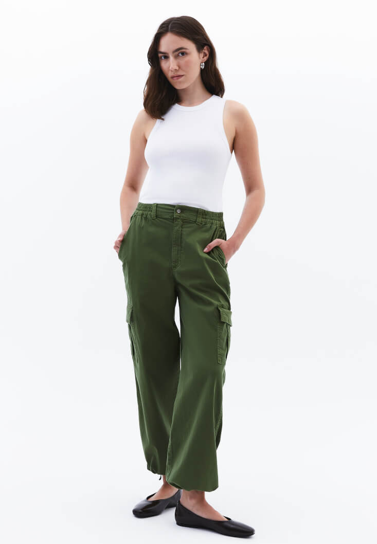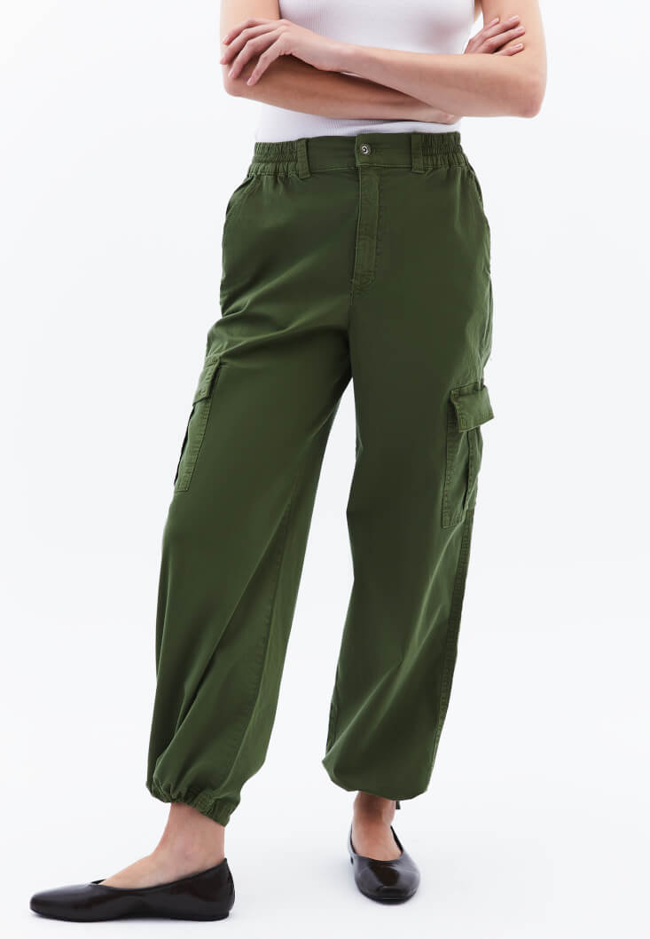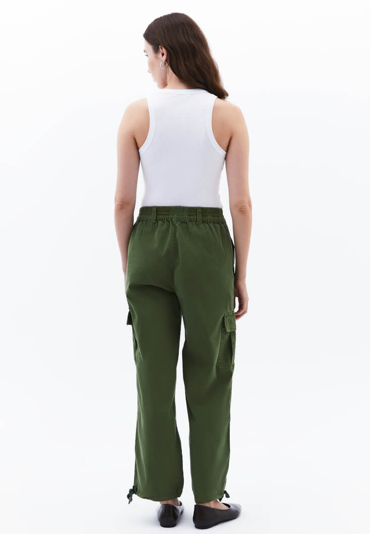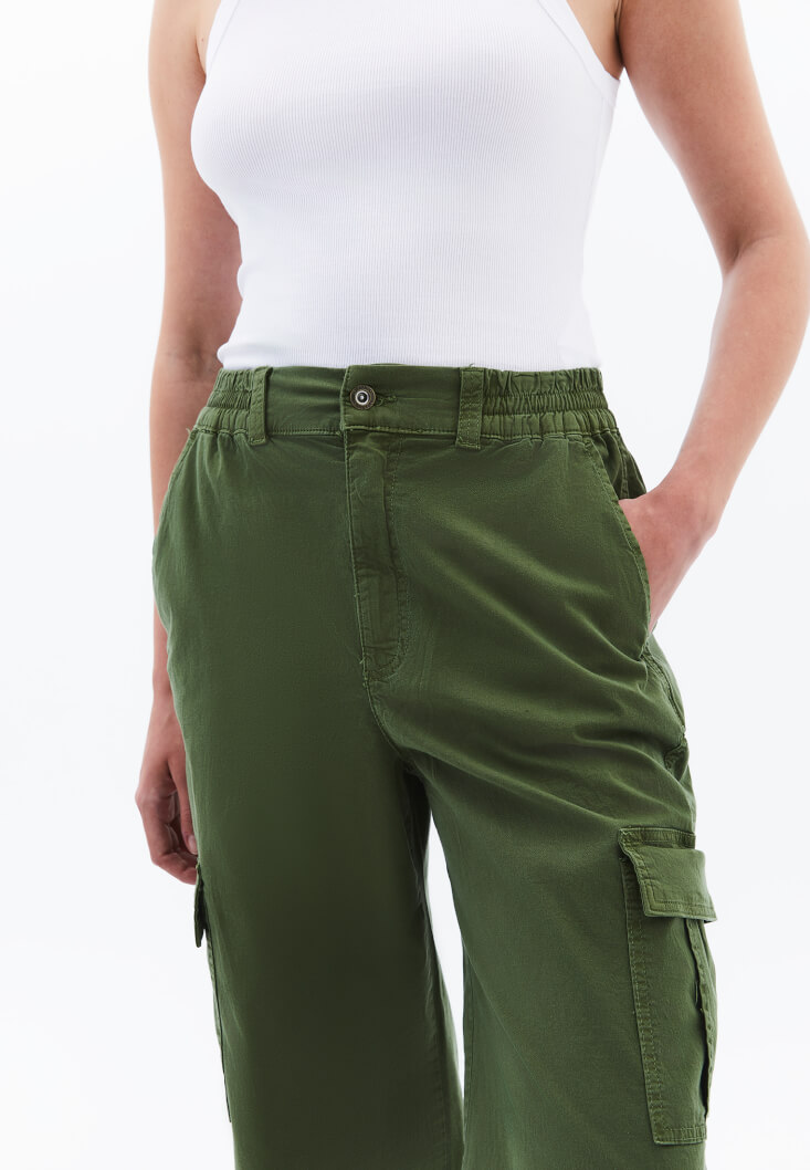 • Bayan Yeşil Yüksek Bel Kargo Cepli Pantolon