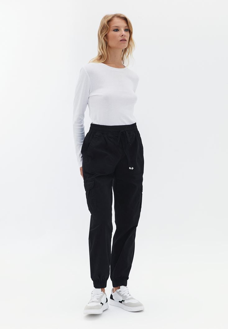 • Bayan Siyah Yüksek Bel Kargo Jogger Pantolon