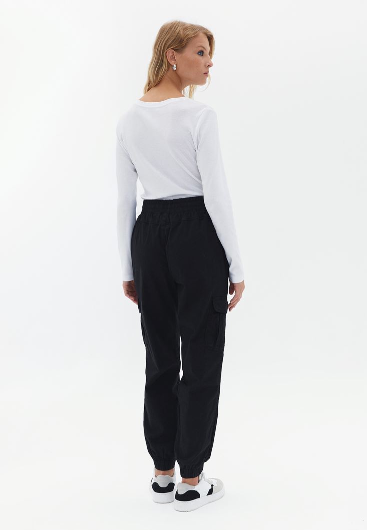 Siyah Yüksek Bel Kargo Jogger Pantolon