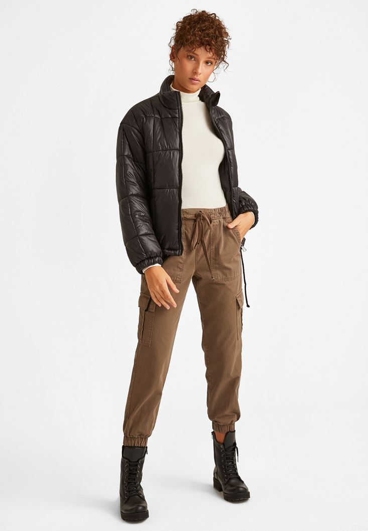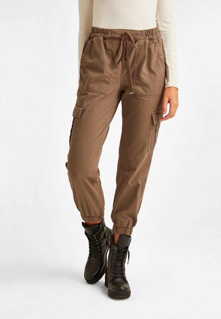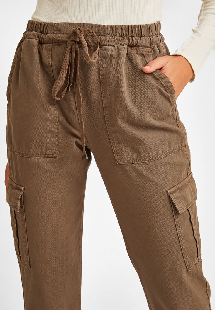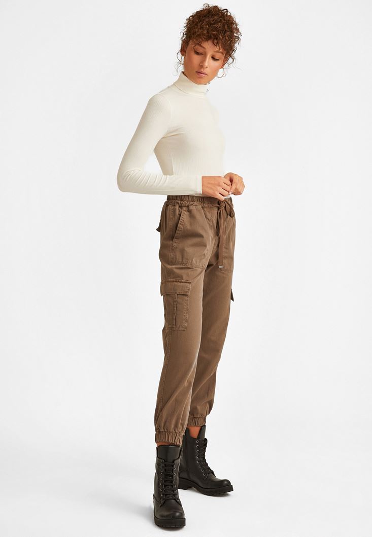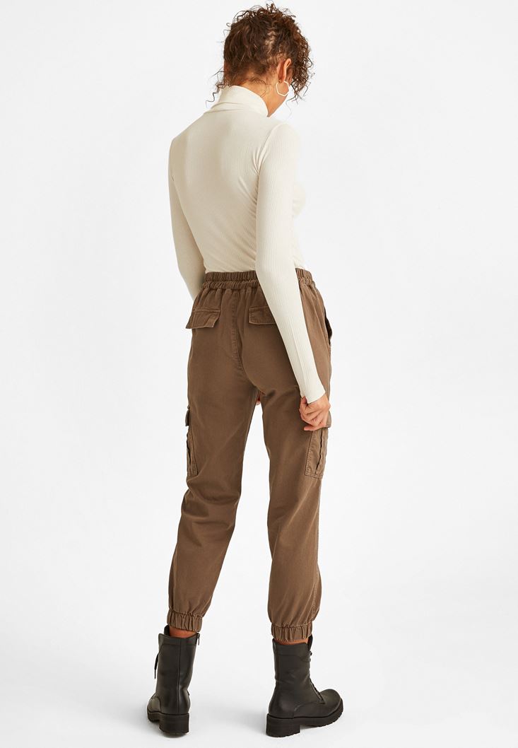 Kahverengi Yüksek Bel Kargo Pantolon