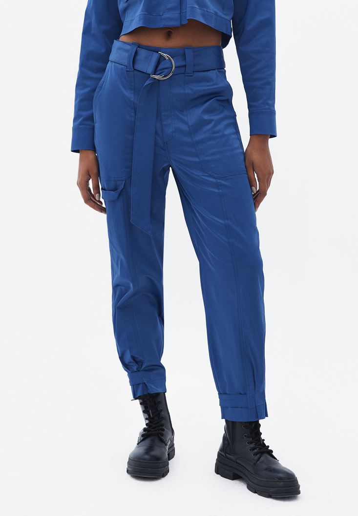 • Bayan Mavi Yüksek Bel Kemer Detaylı Carrot-Fit Pantolon