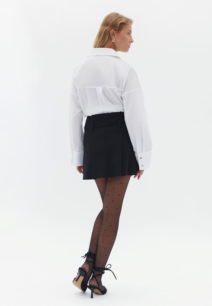 • Bayan Siyah Yüksek Bel Kemer Detaylı Etek