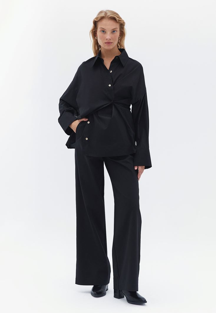 • Bayan Siyah Yüksek Bel Kemerli Wide-Leg Pantolon