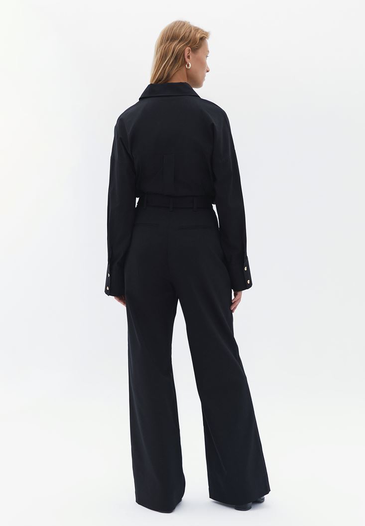 Siyah Yüksek Bel Kemerli Wide-Leg Pantolon