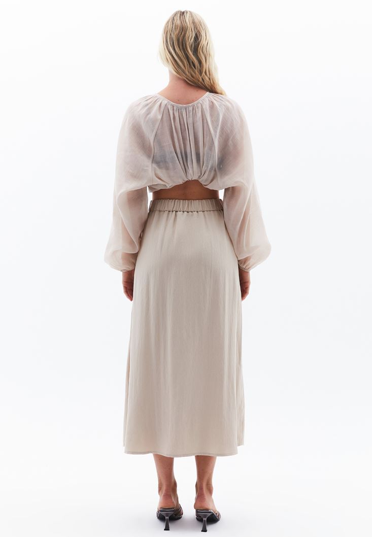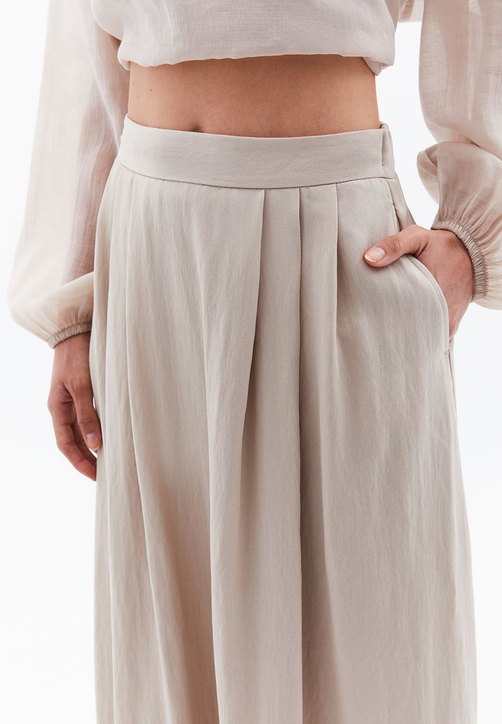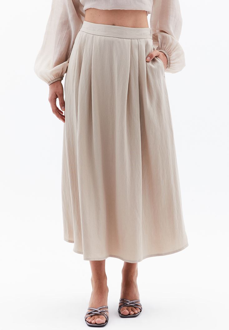 Bej Yüksek Bel Midi Etek ( TENCEL™ )