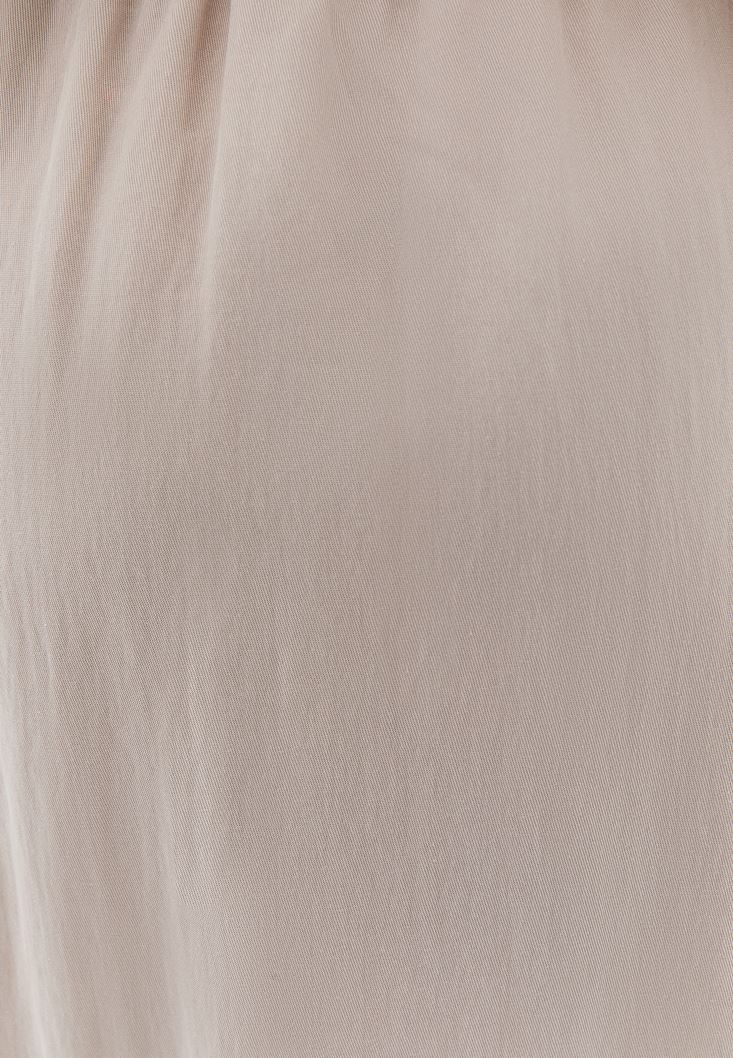 • Bayan Bej Yüksek Bel Midi Etek ( TENCEL™ )