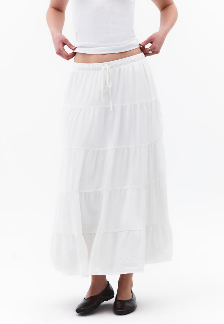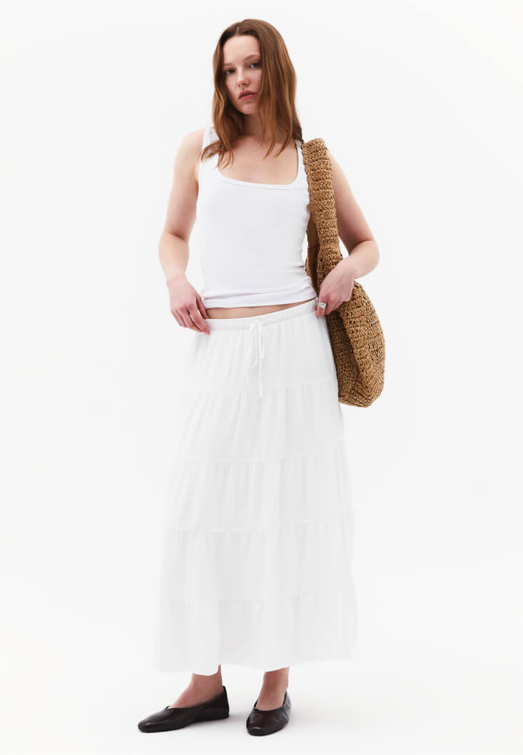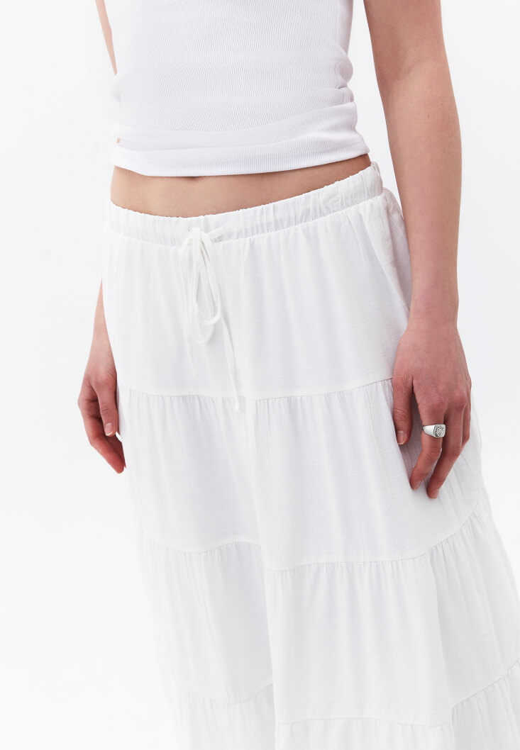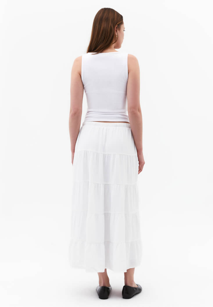 • Bayan Beyaz Yüksek Bel Midi Etek