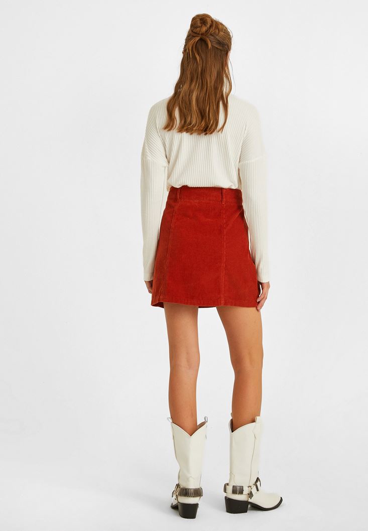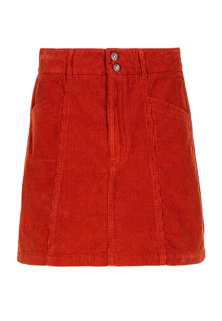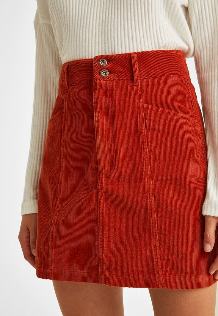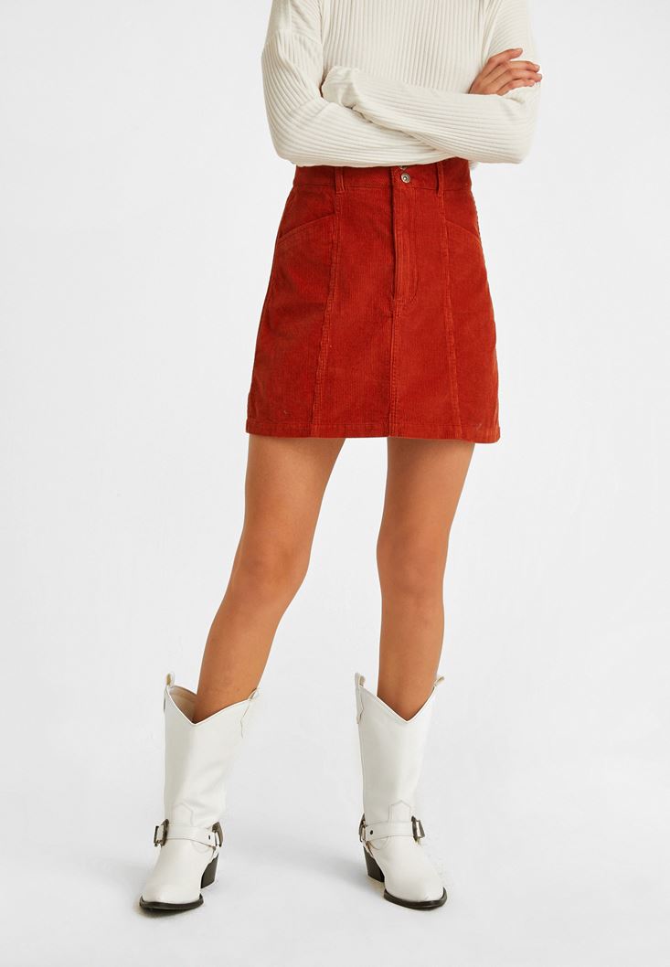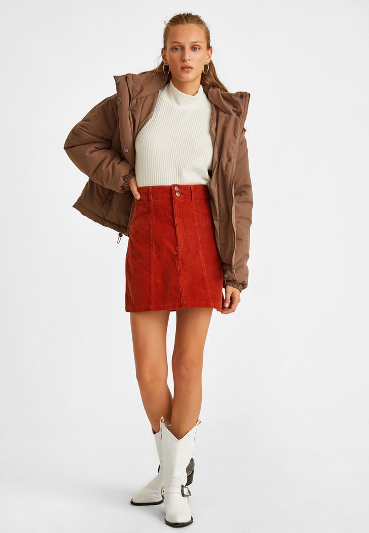 • Bayan Kiremit Yüksek Bel Mini Kadife Etek