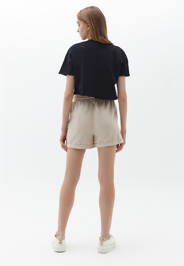 • Bayan Bej Yüksek Bel Mini Şort ( TENCEL™ )