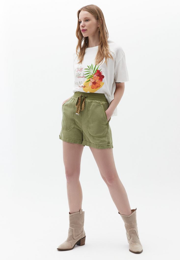 • Bayan Yeşil Yüksek Bel Mini Şort ( TENCEL™ )