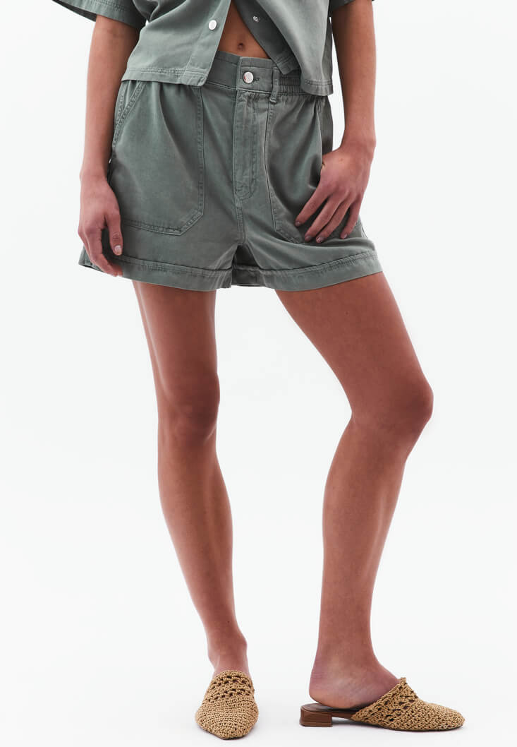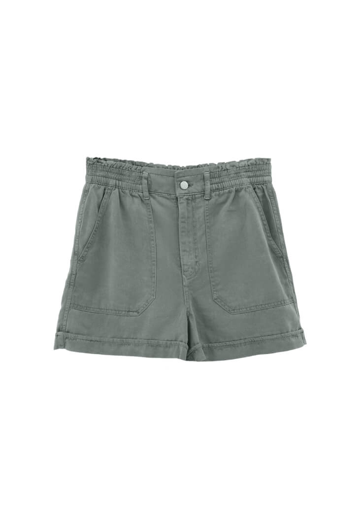 Yumuşak dokusu ve doğal içeriğiyle öne çıkan bu mini şort, TENCEL™ ve pamuk karışımı kumaşı sayesinde nefes alabilirlik ve hafiflik sunar. Yüksek bel formu belinizi zarifçe vurgularken, rahat kalıbı ve esnek lastik beli sayesinde gün boyu konfor sağlar.