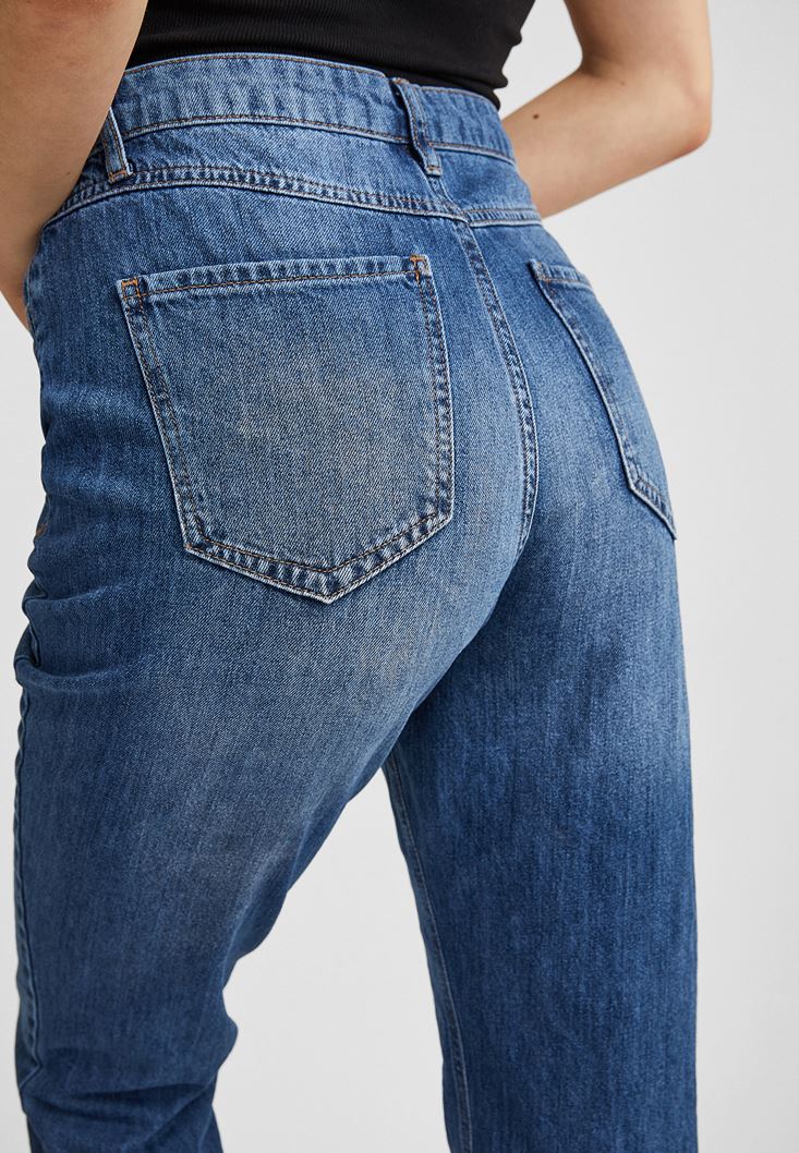 Mavi Yüksek Bel Mom Jeans