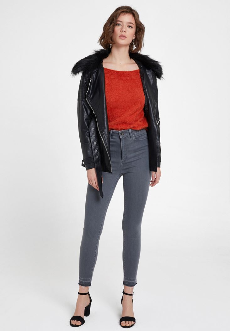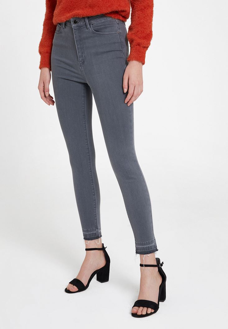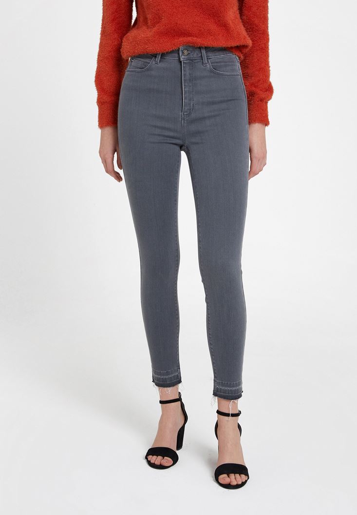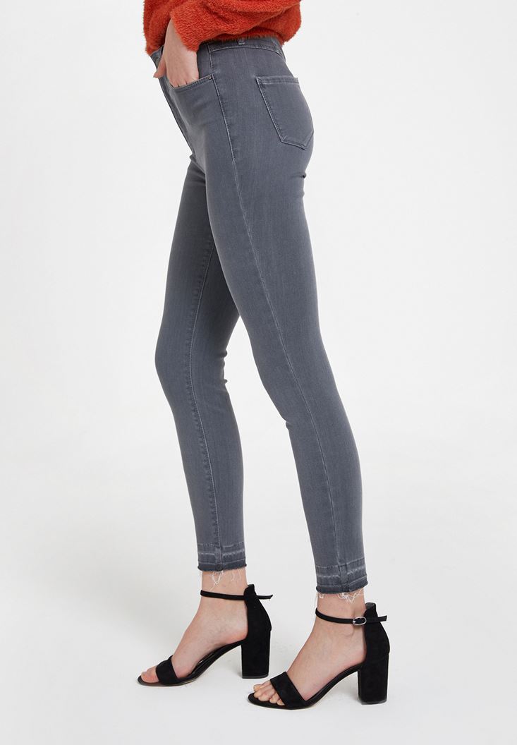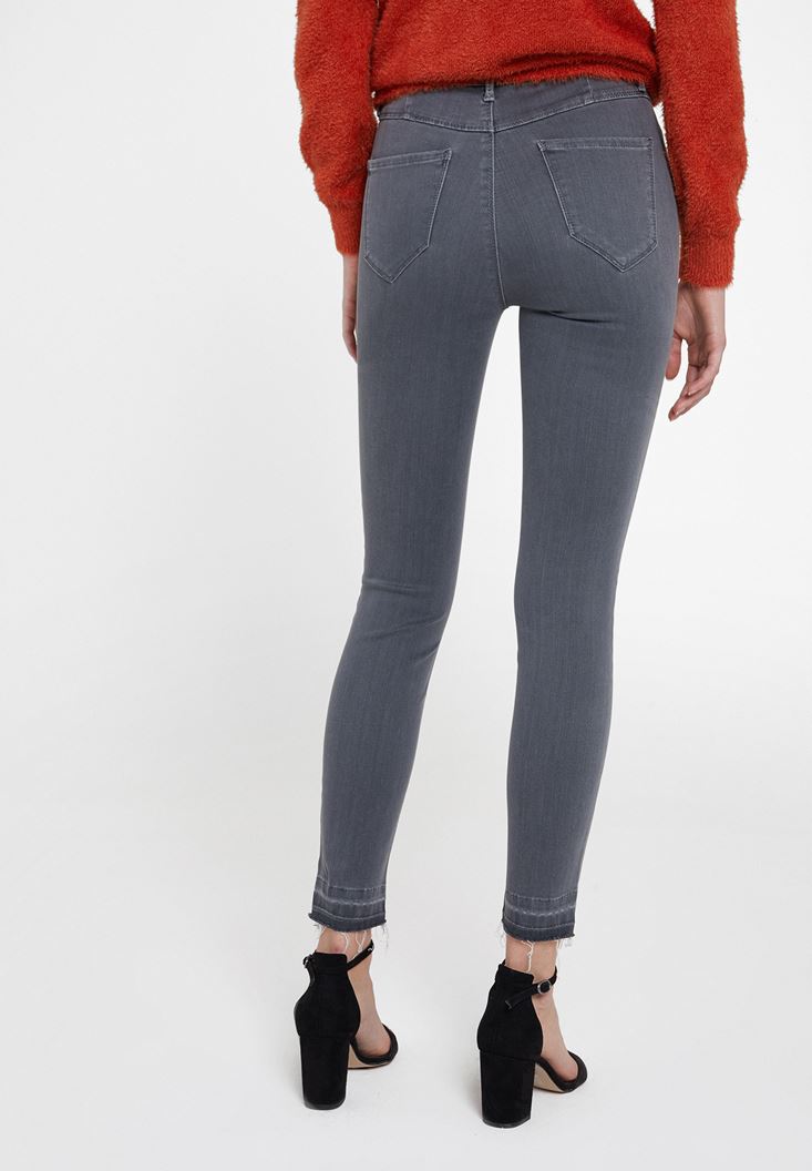 • Bayan Gri Yüksek Bel Paça Detaylı Denim
