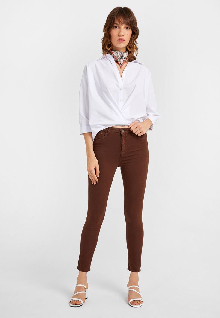 Yüksek Bel Pantolon ve Poplin Gömlek Kombini