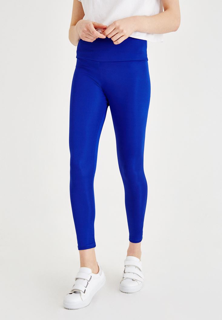 • Bayan Lacivert Yüksek Bel Parlak Tayt