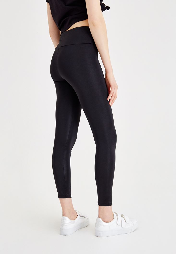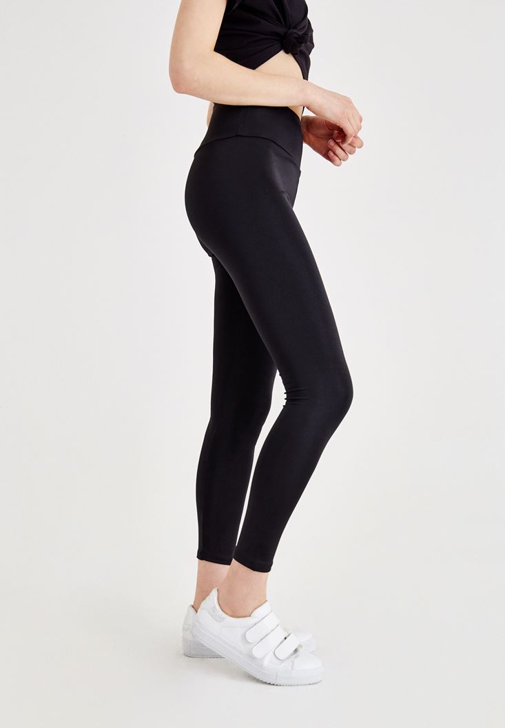 • Bayan Siyah Yüksek Bel Parlak Tayt