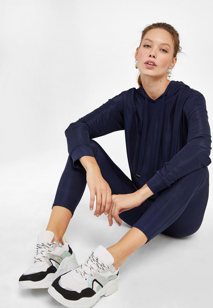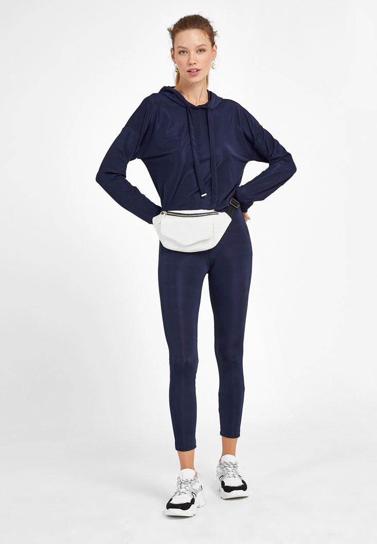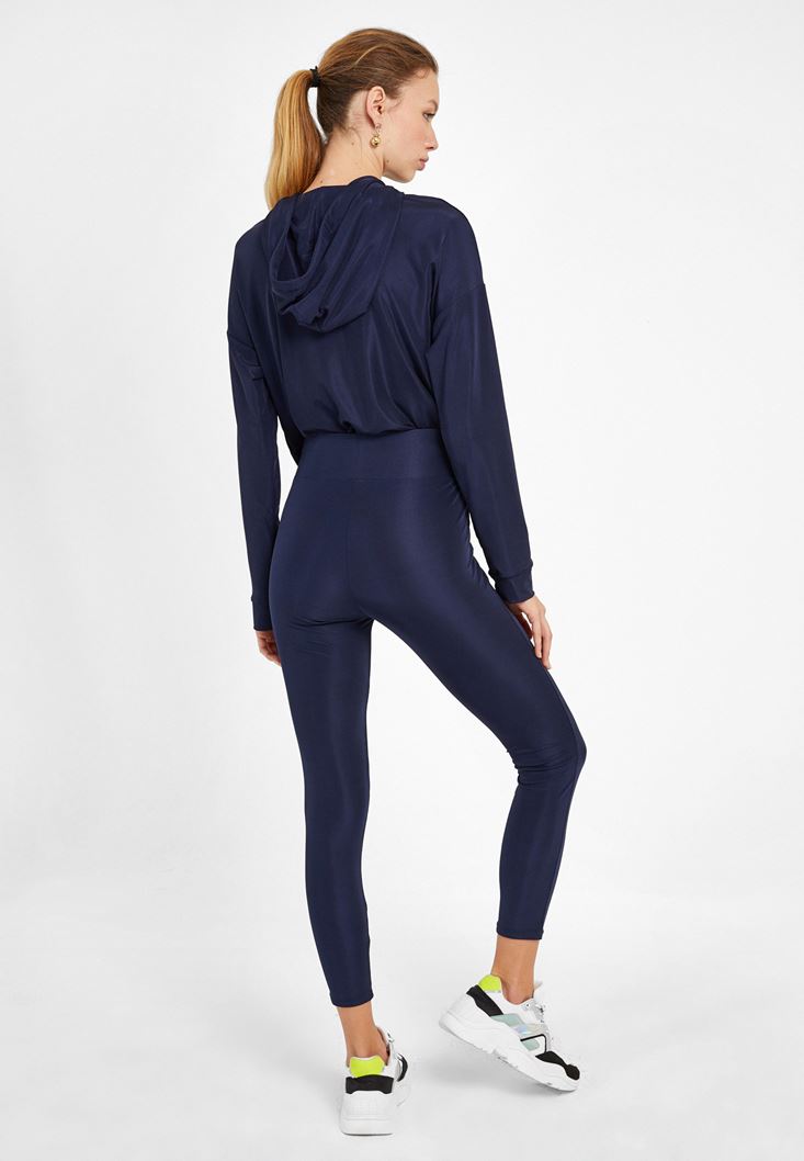 • Bayan Lacivert Yüksek Bel Parlak Tayt