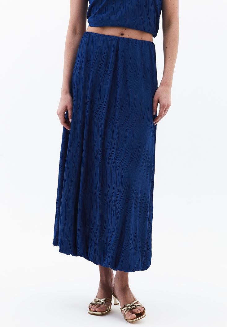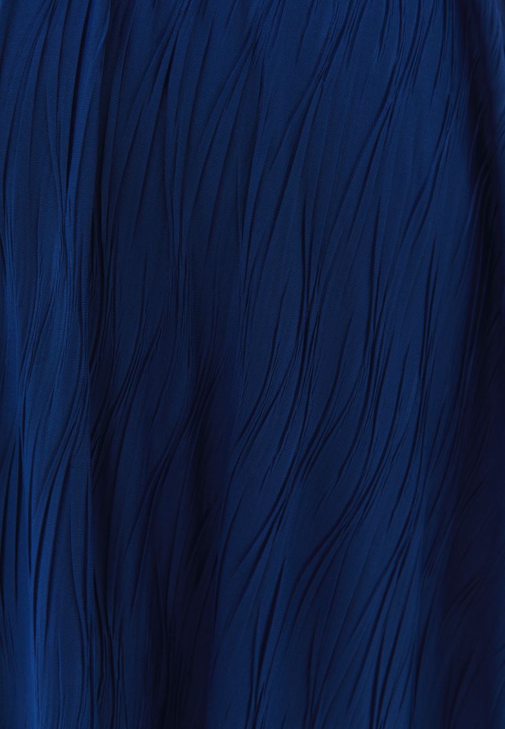 • Bayan Mavi Yüksek Bel Pileli Etek