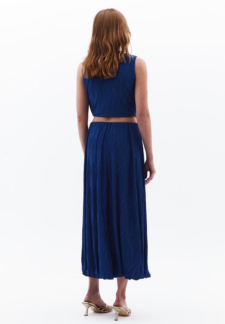 Mavi Yüksek Bel Pileli Etek