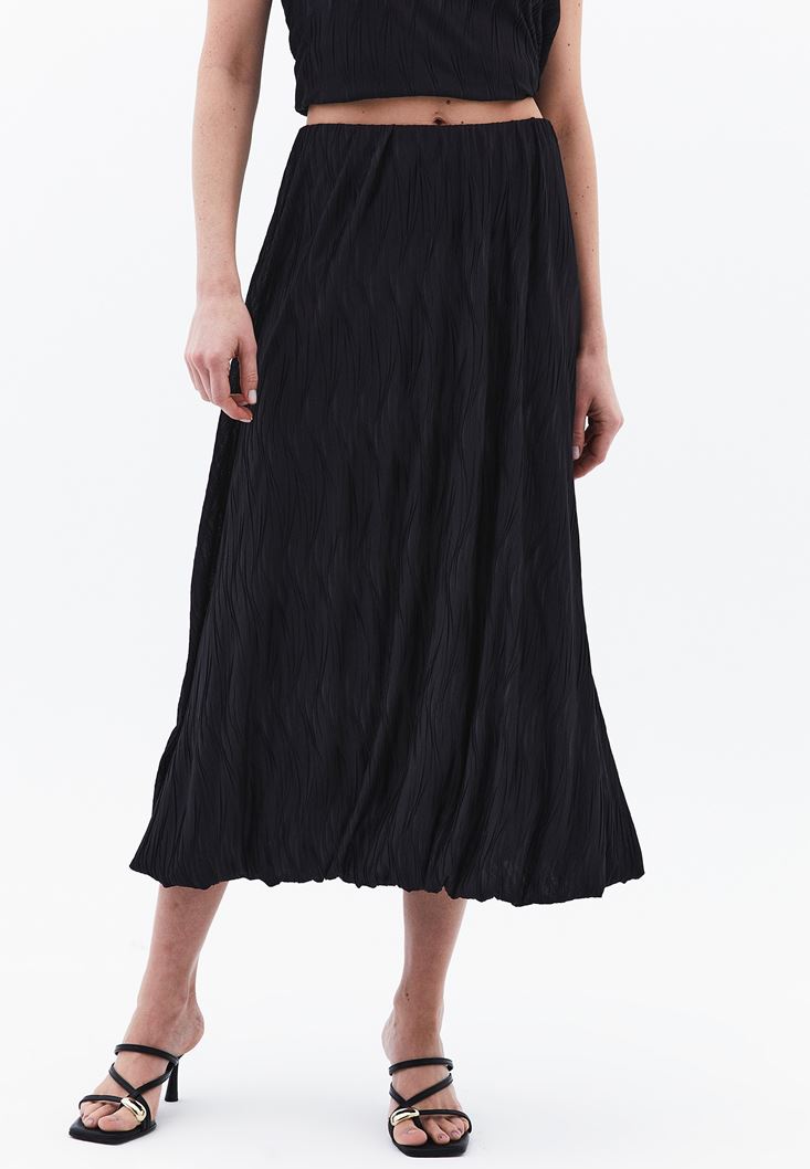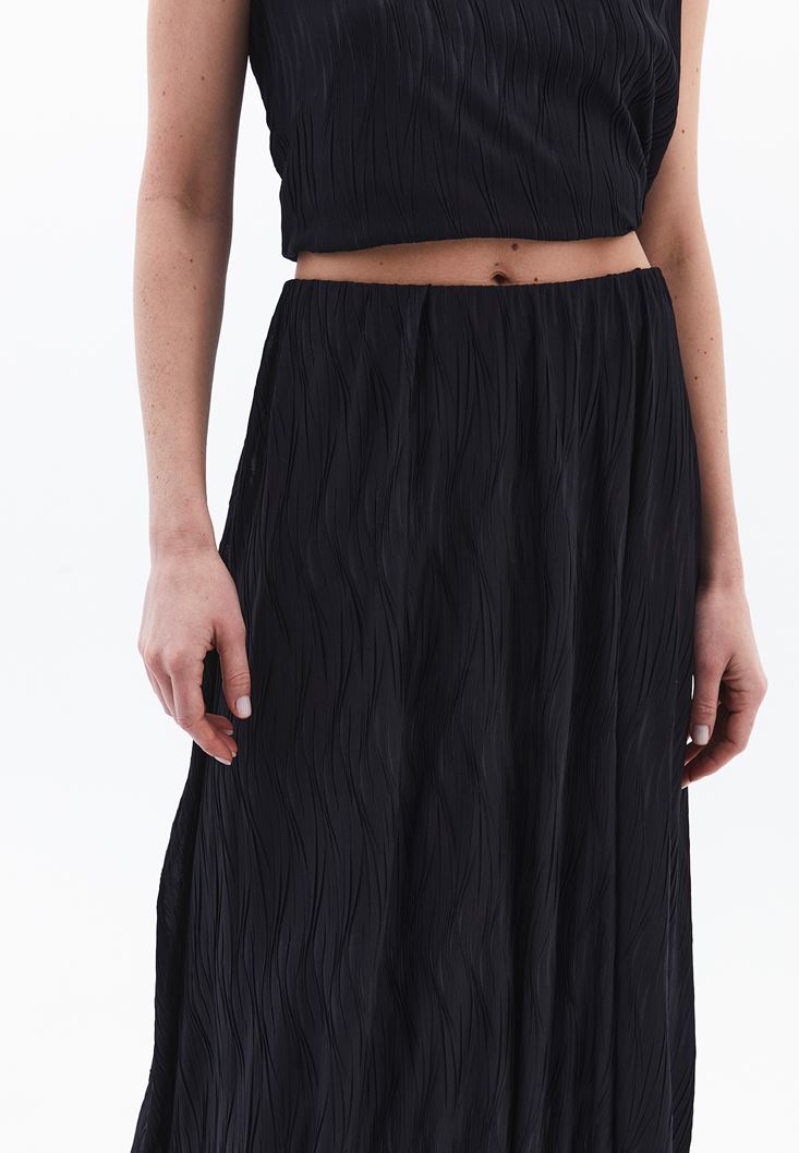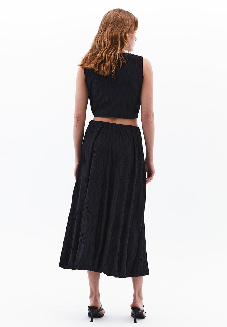 Siyah Yüksek Bel Pileli Etek