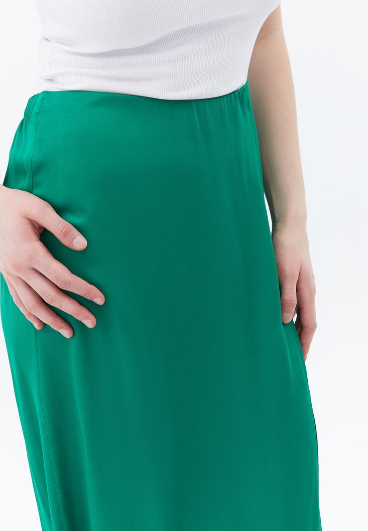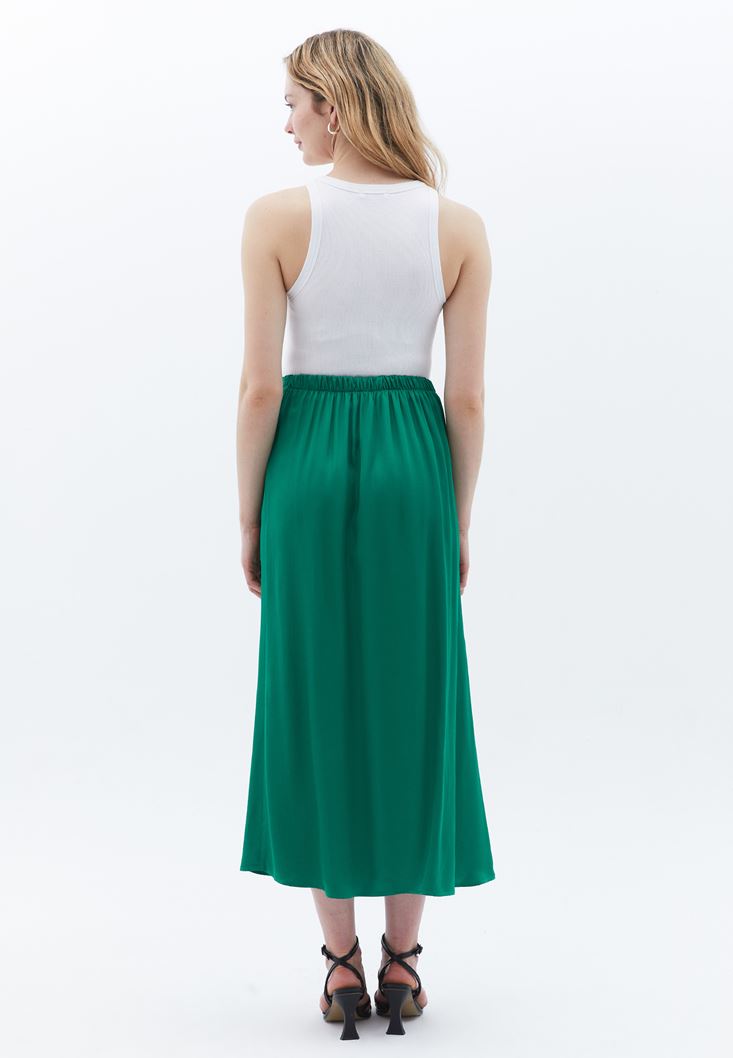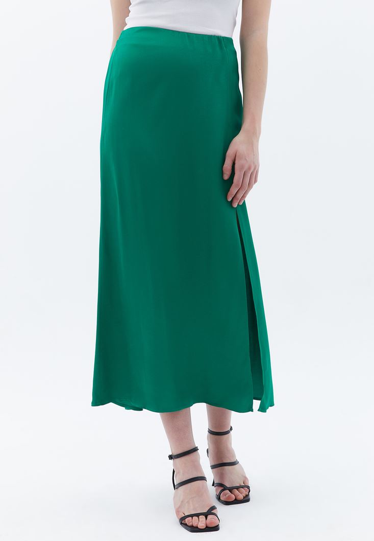 • Bayan Yeşil Yüksek Bel Saten Midi Etek