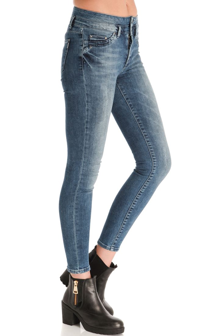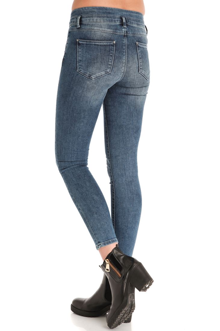 Yüksek belli, cepli skinny denim pantolon.