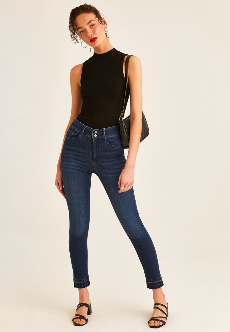 Yüksek Bel Skinny Denim Pantolon modeli. Mükemmel push up etkisi için ideal bir seçenek... Bir beden ince gösteren kalıbın eşsiz duruşu için skinny pantolon ile buluşma vakti geldi. Kusursuz bir görünüm için tercih edebileceğin bu parçayı crop atletlerle ve topuklu terliklerle buluşturmak oldukça hoş! Şimdi skinny pantolon ile hareket özgürlüğüne merhaba de...
