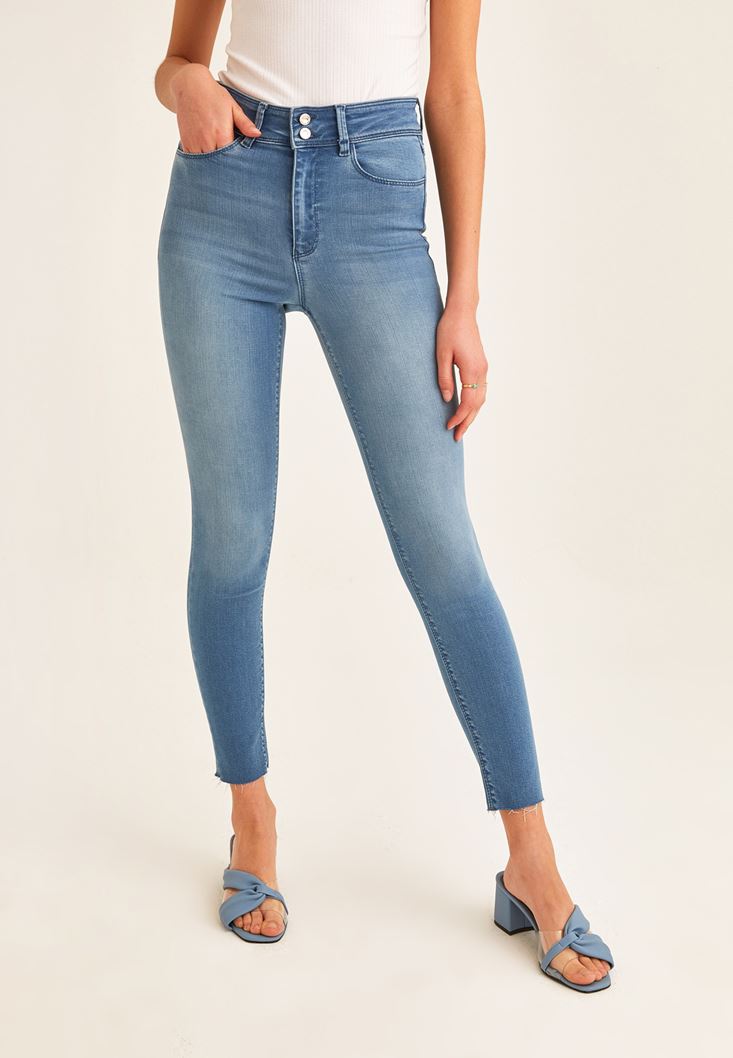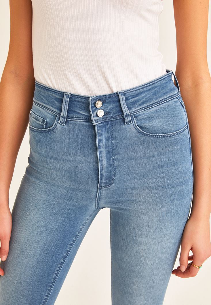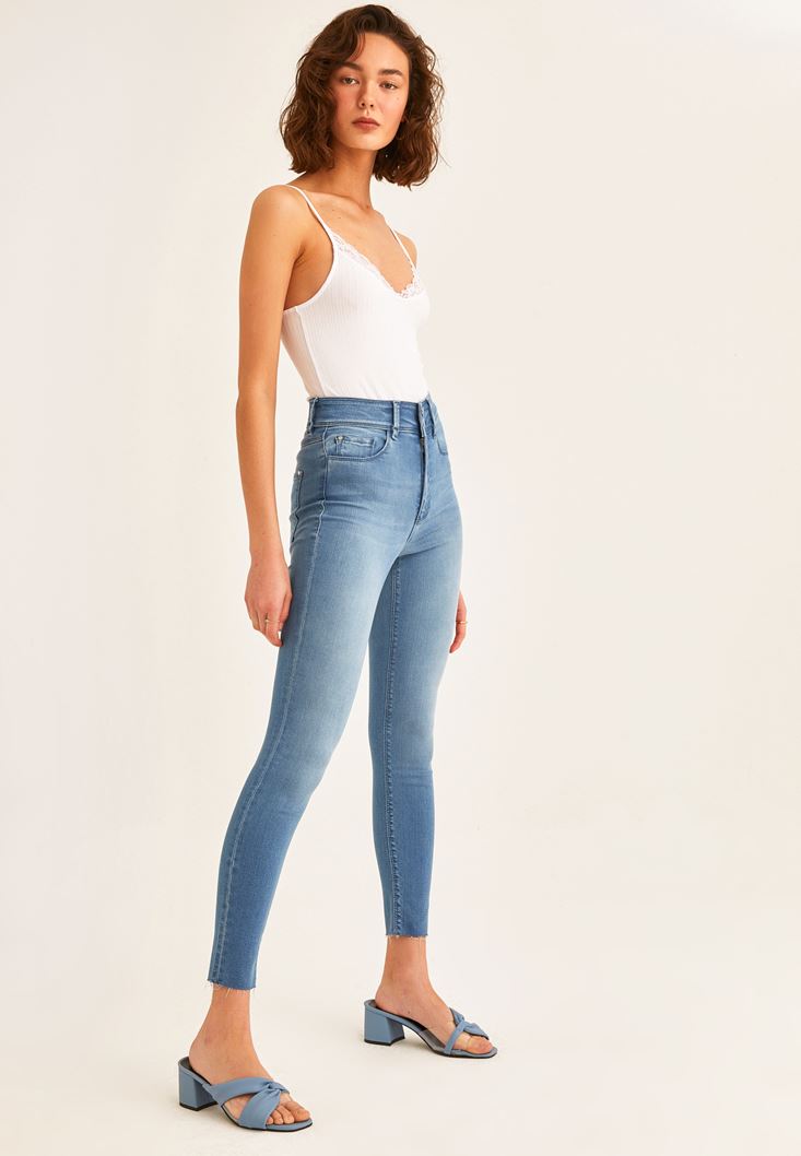 Mavi Yüksek Bel Skinny Denim Pantolon