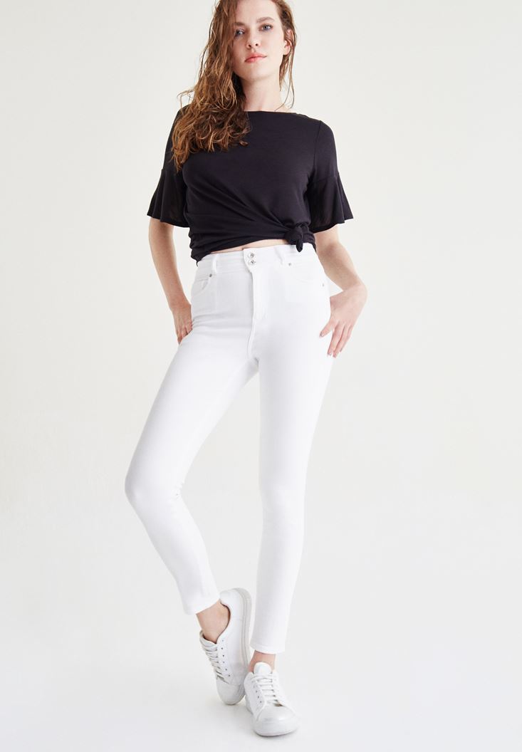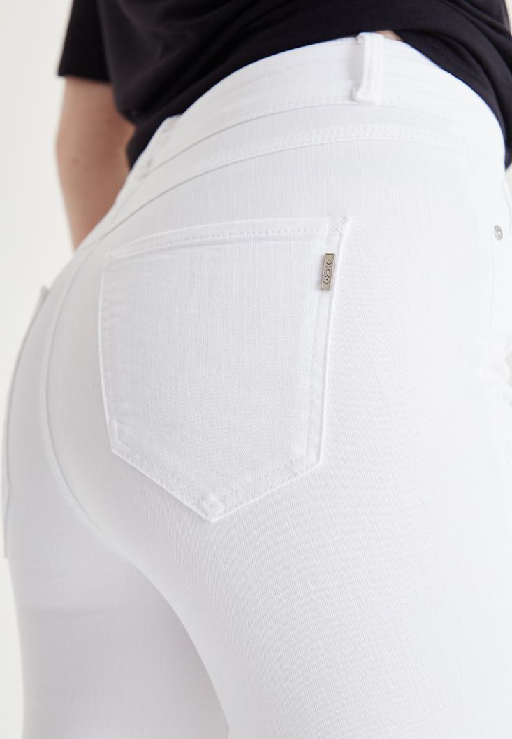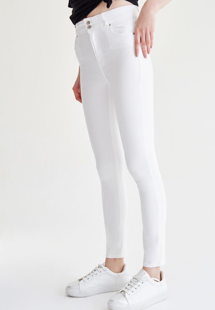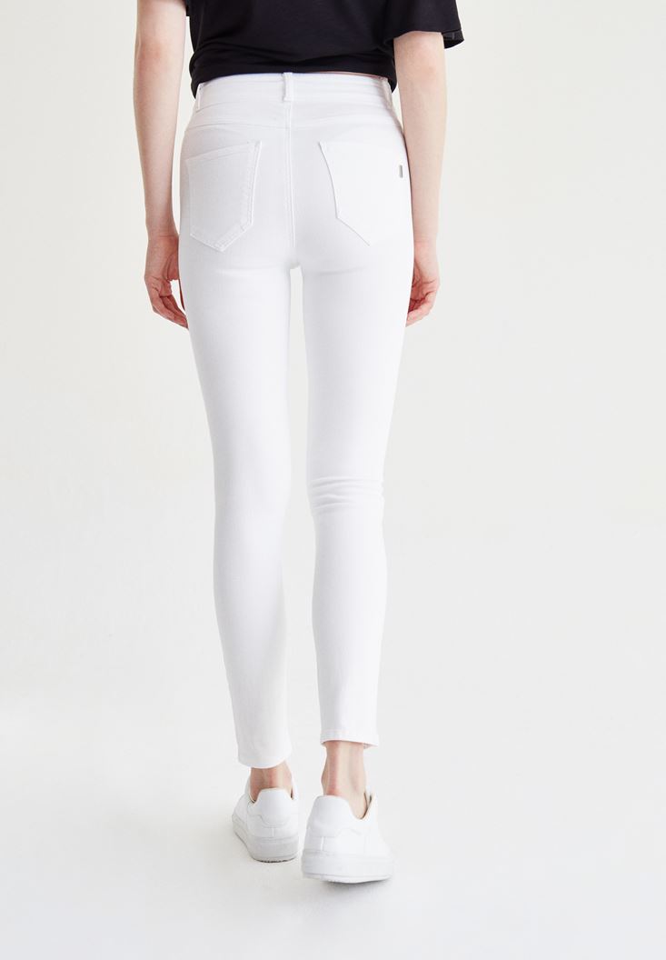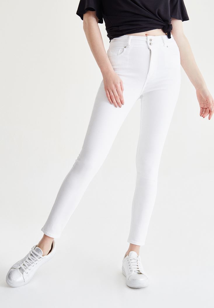 Beyaz Yüksek Bel Skinny Pantolon