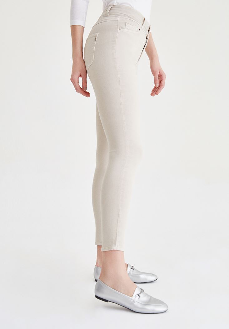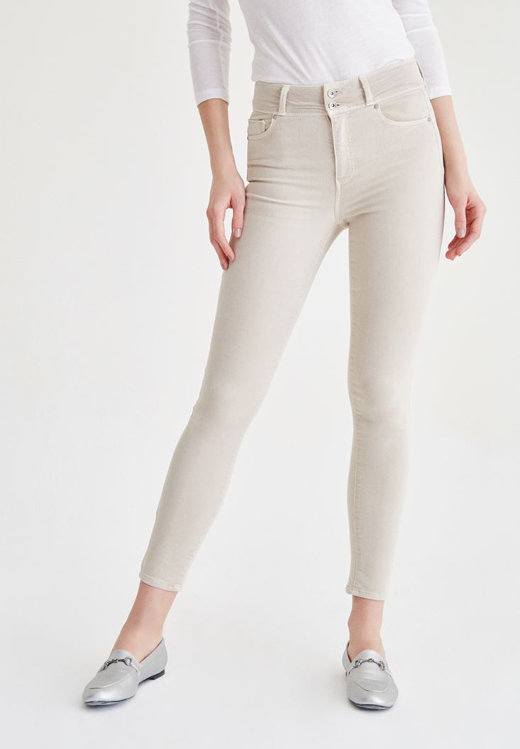 • Bayan Krem Yüksek Bel Skinny Pantolon