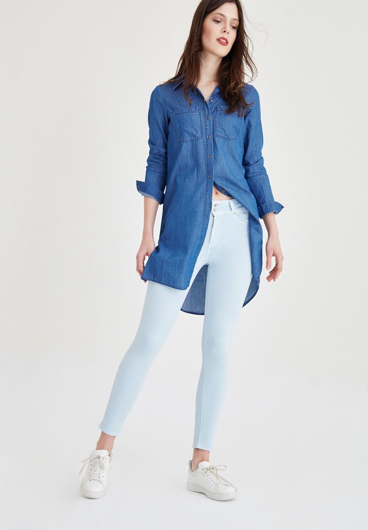 • Bayan Mavi Yüksek Bel Skinny Pantolon