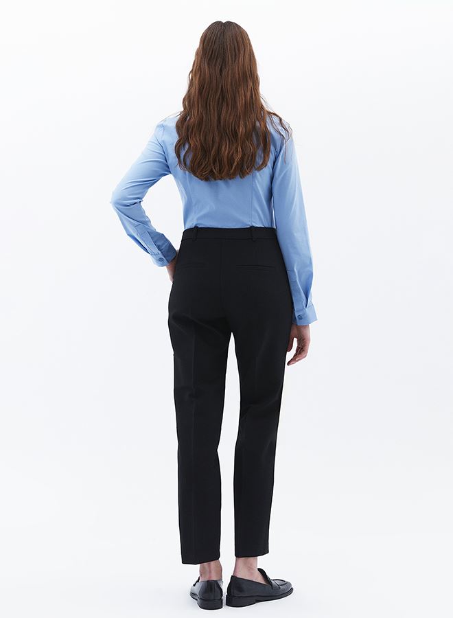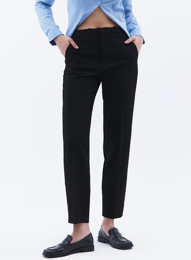 Siyah Yüksek Bel Slim-Fit Pantolon