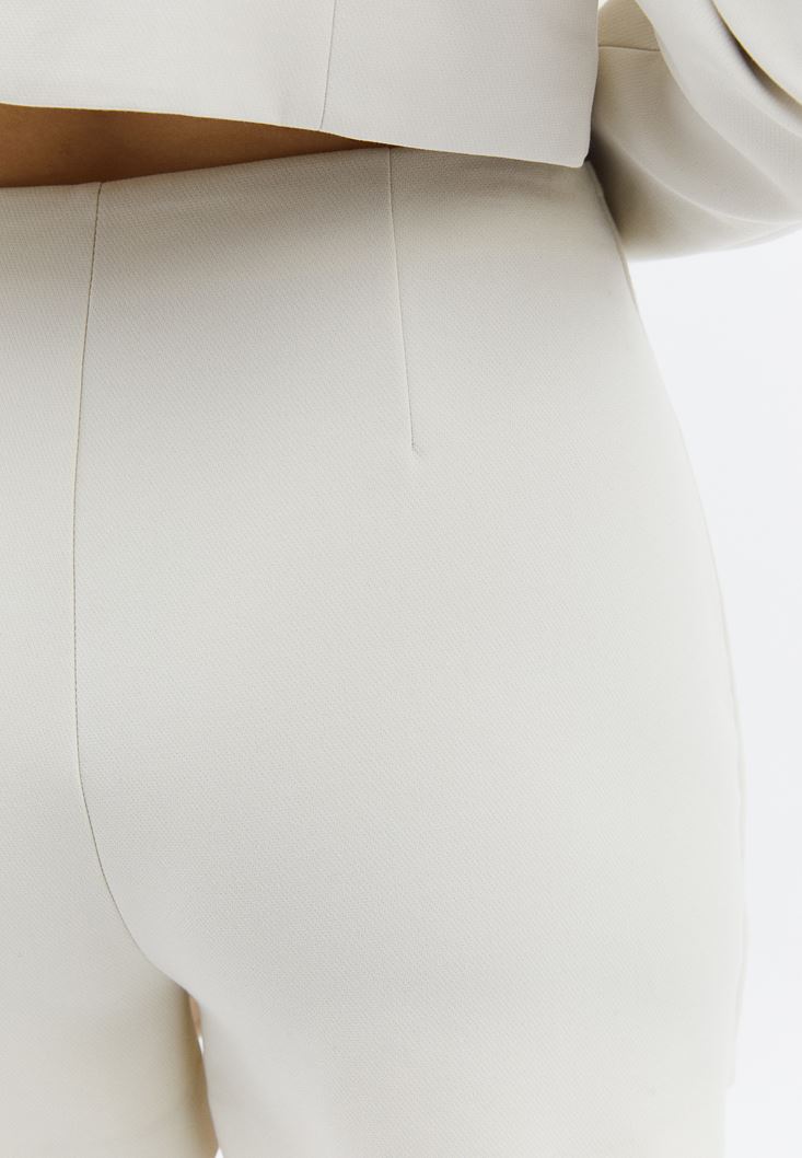 Viskon karışımlı doku, bedene yakın fit, yüksek bel, mini boy, ön kısmı düğme kapamalı, yan kısmı gizli fermuarlı.